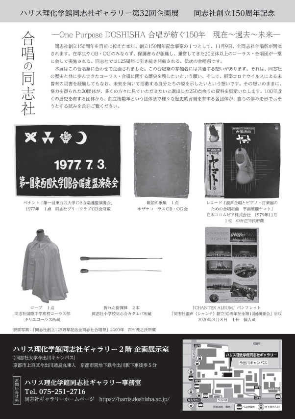 本展では、同志社グリークラブにゆかりのある記念品・思い出の品を 約50点 展示いたします。