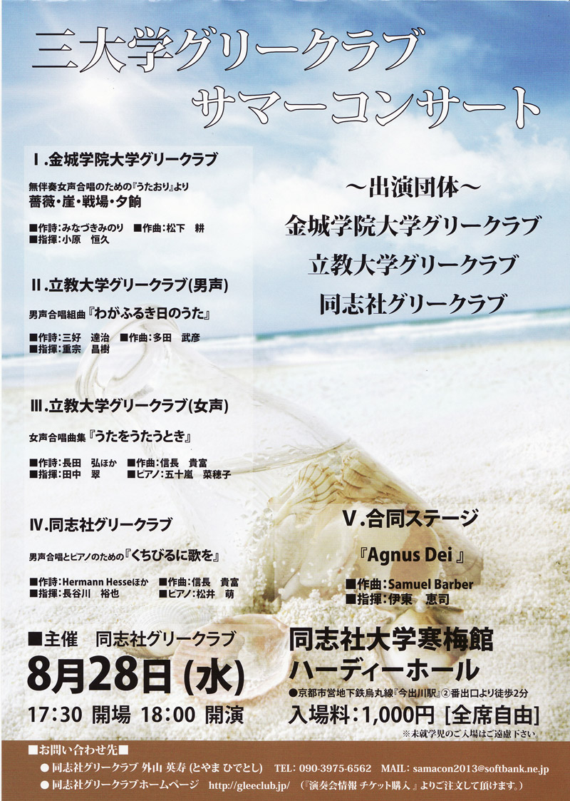 今年の三大学グリークラブサマーコンサートのご案内をアップしました。