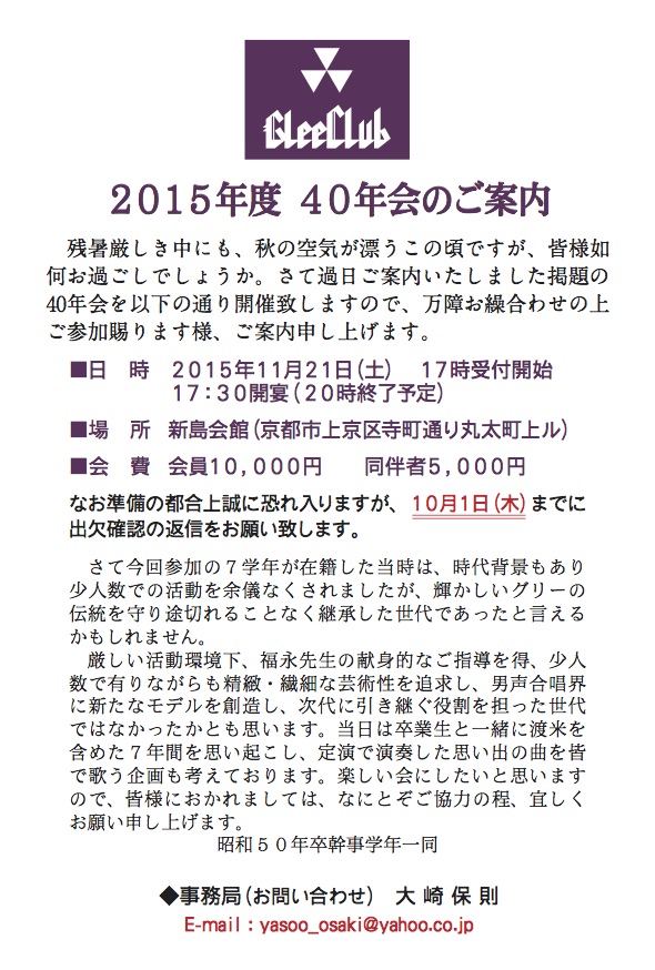 ◼︎対象学年:昭和47年卒~53年卒(幹事学年・昭和50年卒)
