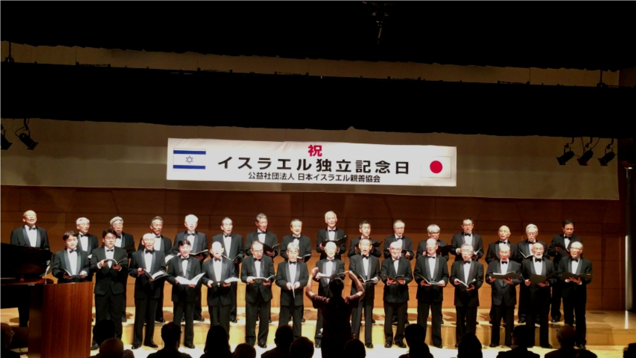 平成28年5月30日(月)、東京クローバークラブ(以下TCC)は今迄参加して来た各種の演奏会、或いはお話し頂いた各地の教会での奉仕とは異なる、極めて有意義な且つ感謝に満ちた演奏会に臨むことができました。 (演奏会場は千代田区いきいきプラザ一番町カスケードホール) 日本イスラエル親善協会(以下JIFA)の会長秋山 哲氏(昭和32年同志社大学経済学部卒。元毎日新聞社常務取締役・経済学博士。彼の甥がTCCのメンバーの一人というつながりもありました。)から昨年末ご丁寧なお招きを頂きました。「“JIFA創立50周年、イスラエル独立68年記念の夕べ”で、イスラエルの歌を含めて男声合唱を披露していただけないか・・・?」というものでした。