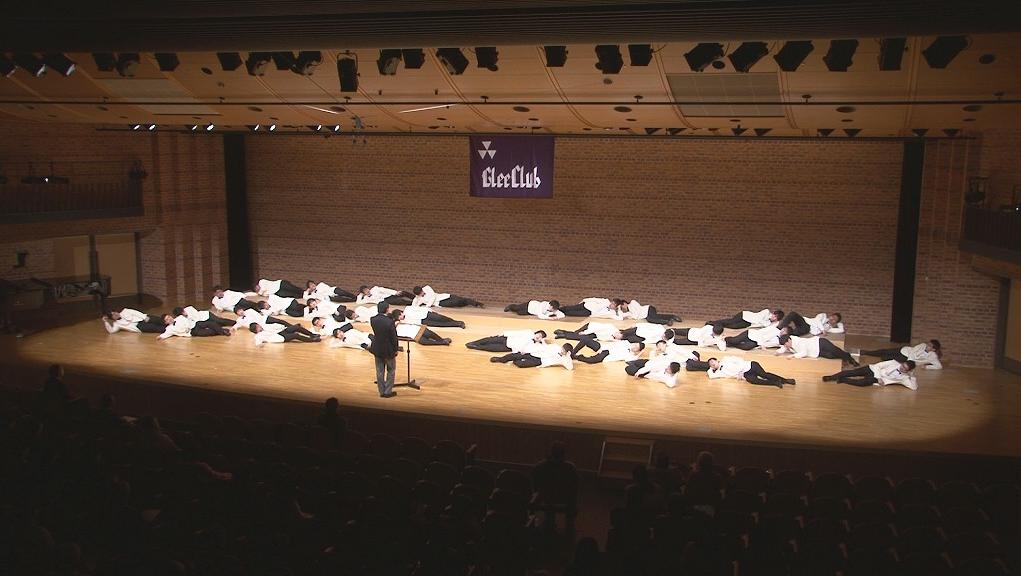 ソリストが舞台狭しと歌って回り、最後は、団員がライオンよろしく全員寝てしまったという演出でした。数多くのコンサートを撮っていますが、あとにも先にも舞台で全員が寝たというのは、初めての経験で、これには会場も「やんや」の喝采でした。