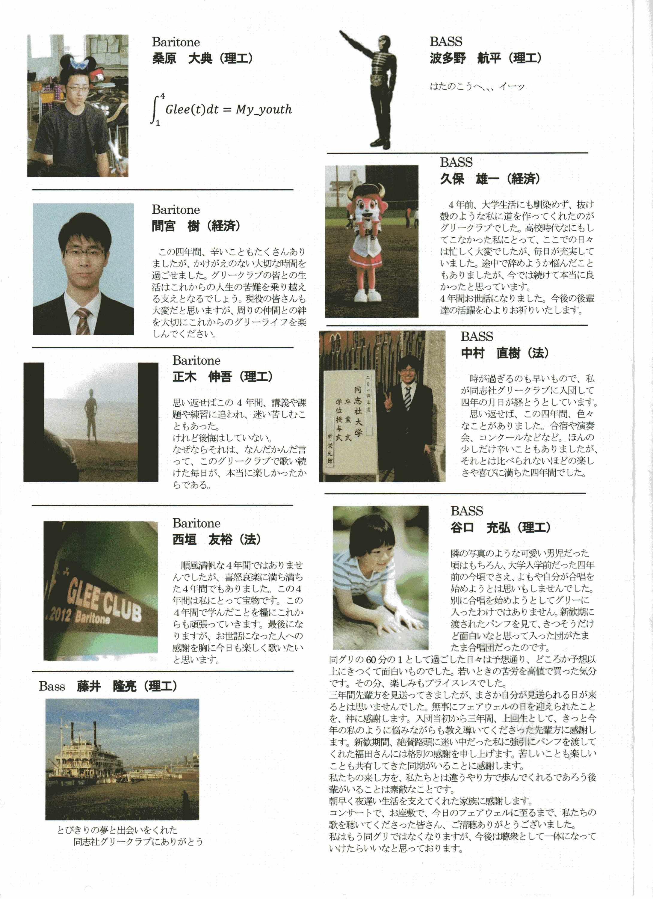 もうひとつ、過去3年卒団したOBを交えての演奏は、即興にもかかわらず、最近の卒団生の数の多さも手伝って、そんじょそこらの男声合唱とは比べものにならない名演でした。過去の女子マネもかけつけて、賑やかなフェアウエルでした。