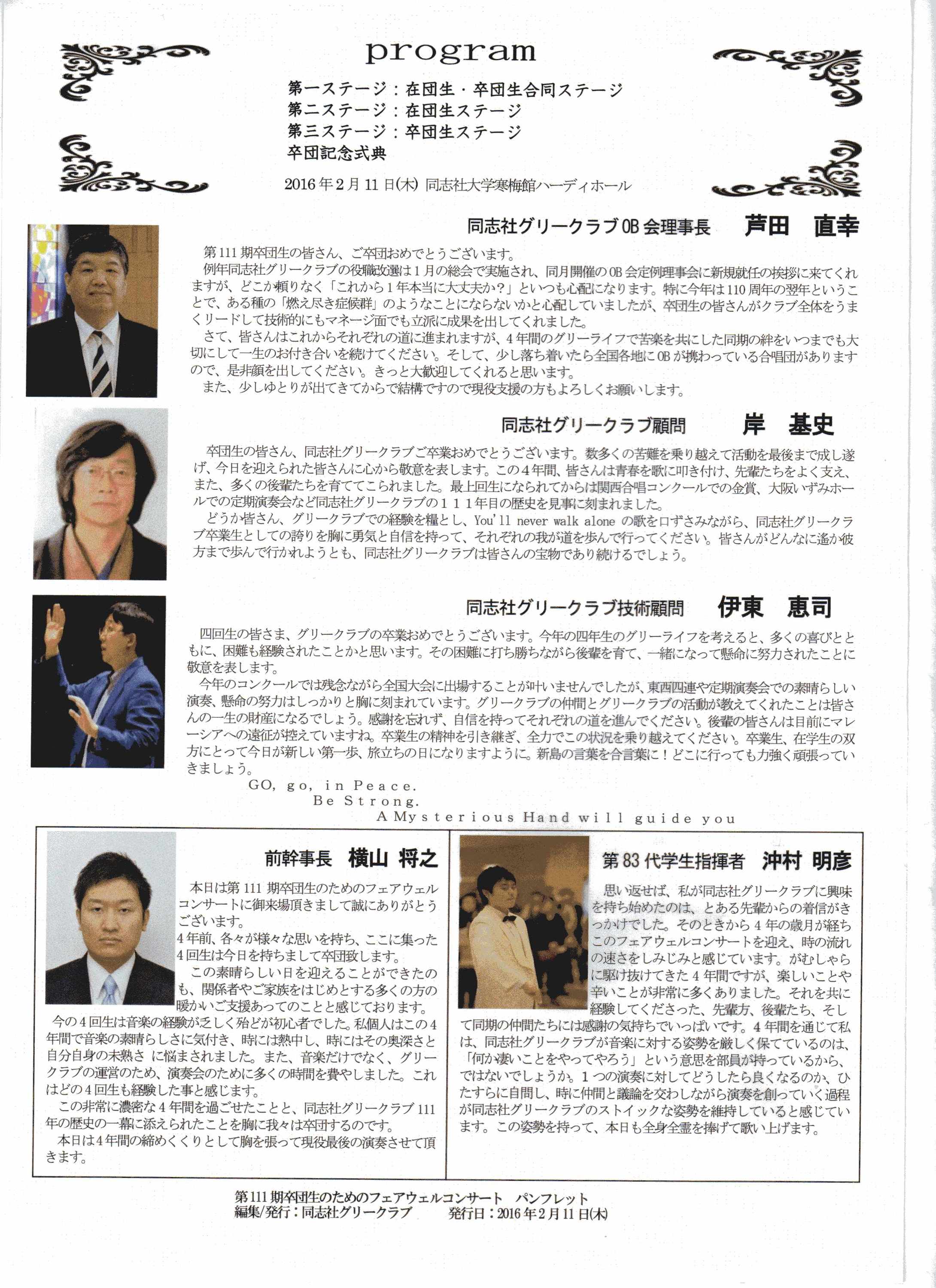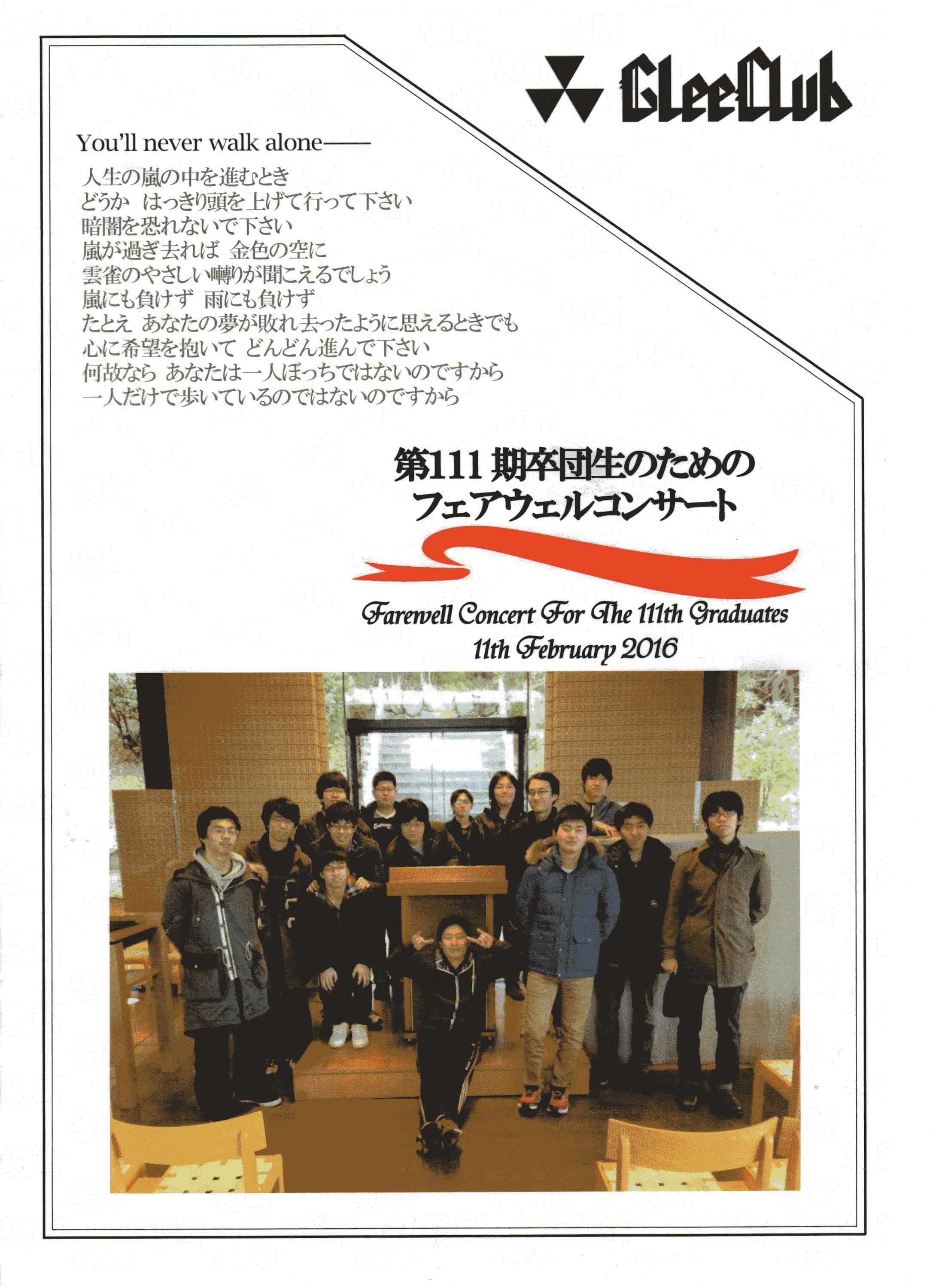 2月11日の建国記念日は、朝から快晴の京都でした。111期を背負ったグリークラブからは、精鋭の15名が卒団しました。