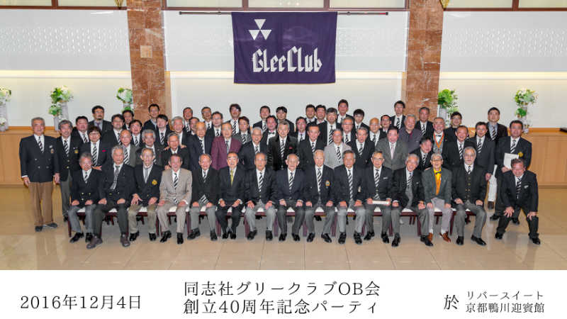 2016年12月4日(日) リバースィート京都鴨川迎賓館にて「同志社グリークラブOB会創立40周年記念パーティー」が開催されました。