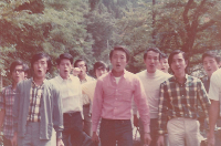 私たち51年卒から話をさせていただき、初めて参加した祇園祭の写真を前にして、太子山を曳くようになったいきさつを、太子山を抽選で引き当てた田野君が話をさせていただきました。40年前に思いをはせ、その後は54年卒から順に年代を遡り48年卒まで、各代の方々に、合宿の写真や演奏旅行の写真を前に、少しずつではありますがエピソードを話していただき、一気にあの青春の時代がよみがえります。心の中に、40年前のグリー時代に思いを馳せながら、豊かな時が流れていきました。