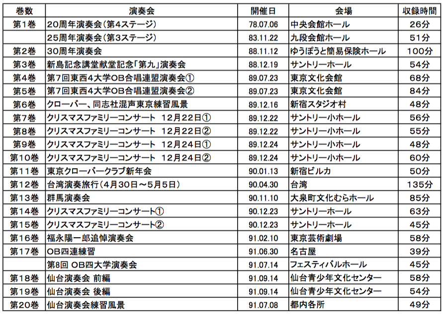 1巻〜20巻 レーベルデザイン、収録曲はこちらをクリック(pdfファイルが開きます)