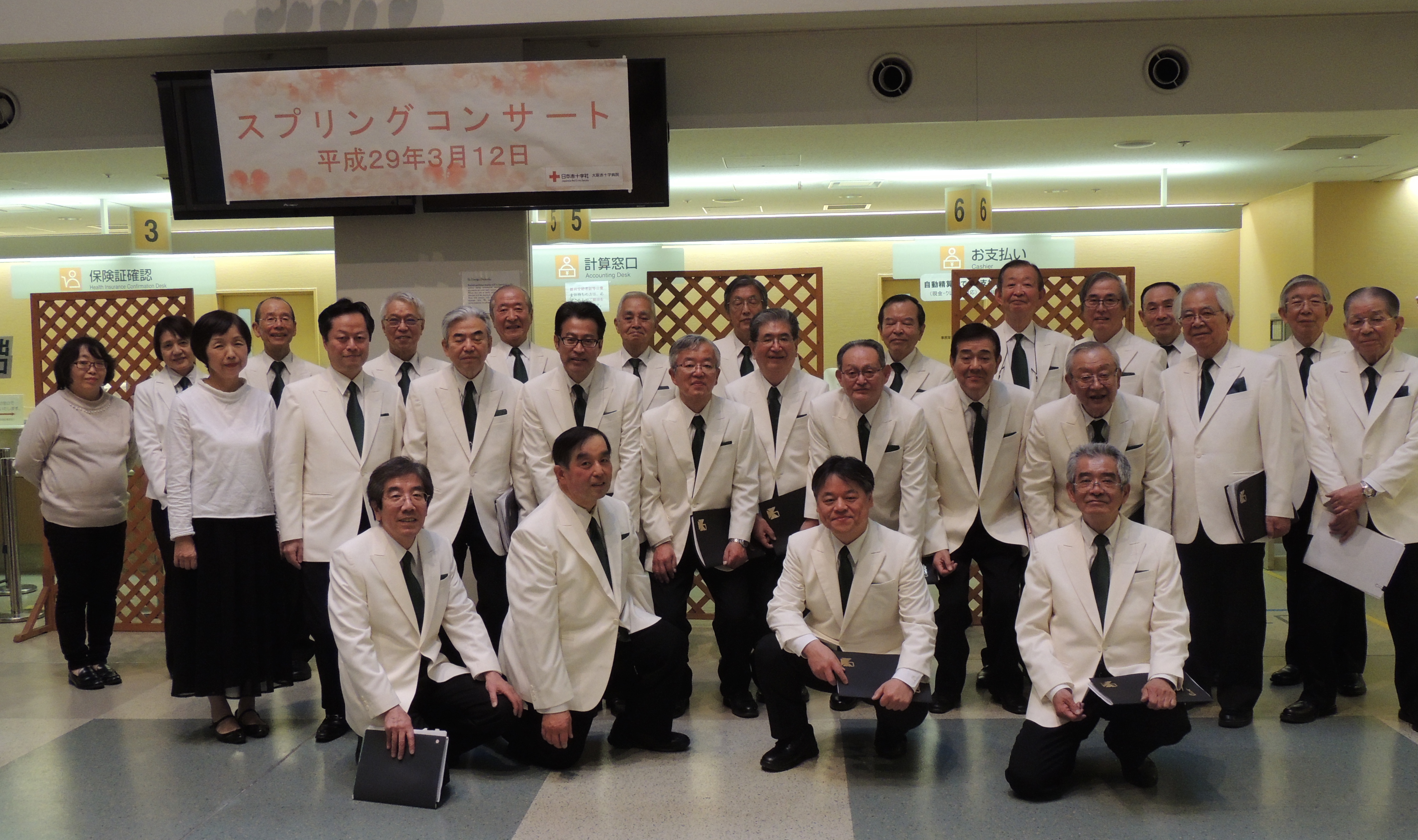 平成29年3月12日(日)14時より、大阪赤十字病院(大阪市天王寺区)で行われたスプリングコンサートに参加しました。大阪赤十字病院は、大阪クローバークラブ 伏村副幹長(S51卒)の地元で、普段より関わりのあるご縁でコンサート依頼のお声をかけていただきました。1万人の第九にも病院で有志を募り、参加されているとのことです。