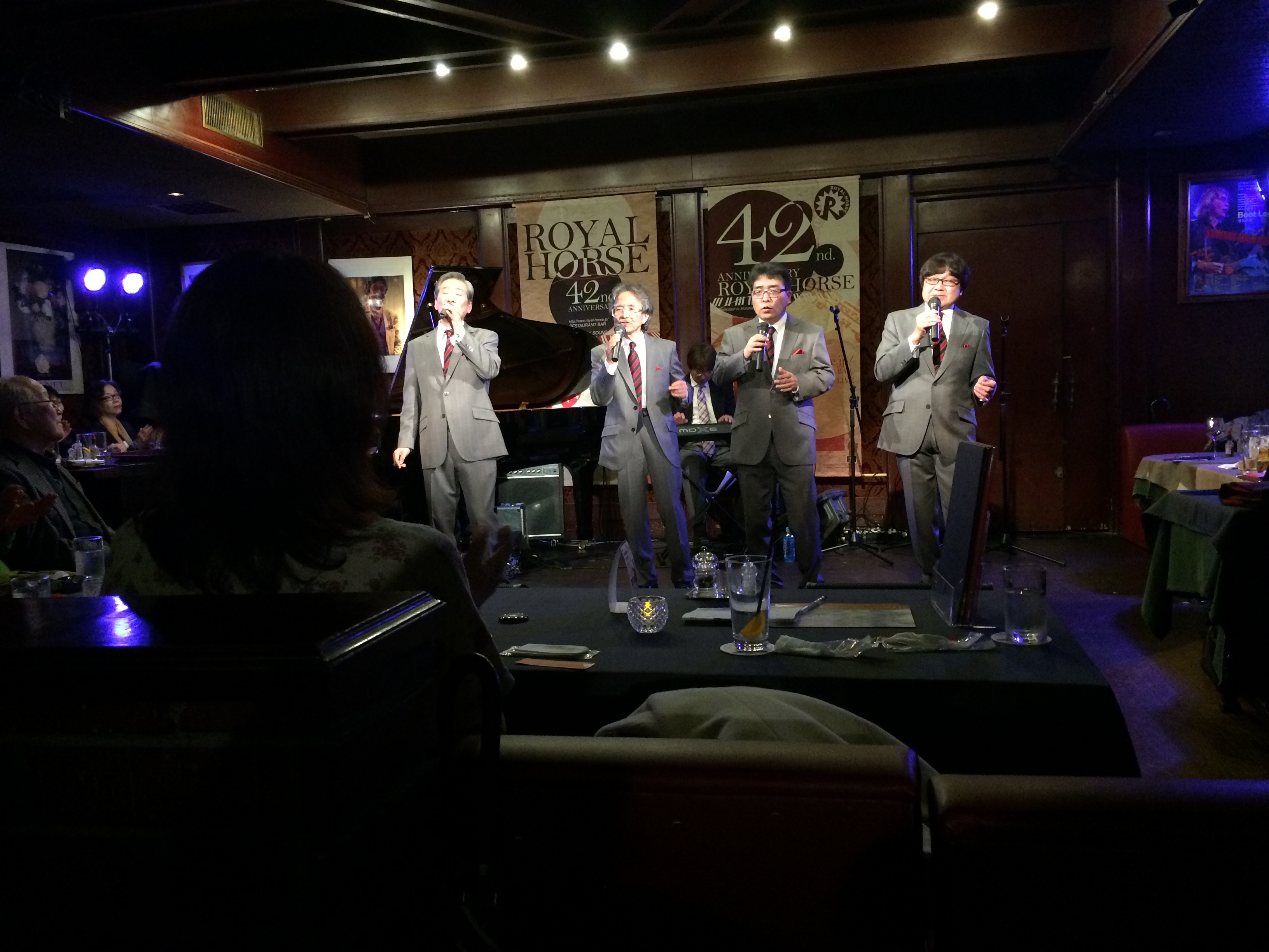 楽屋話ですが、ローバーズ初めてステージ衣装に背広を採用。しかもイージーオーダーで新調。4人とも気に入ってて当分はこの衣装でステージに立つことになるでしょう。
