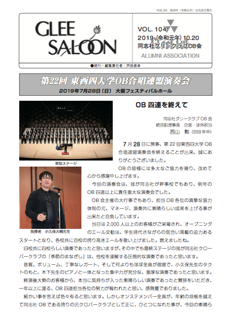 伊東技術顧問からの「同志社グリークラブの現状、定期演奏会に向けて」を掲載しました