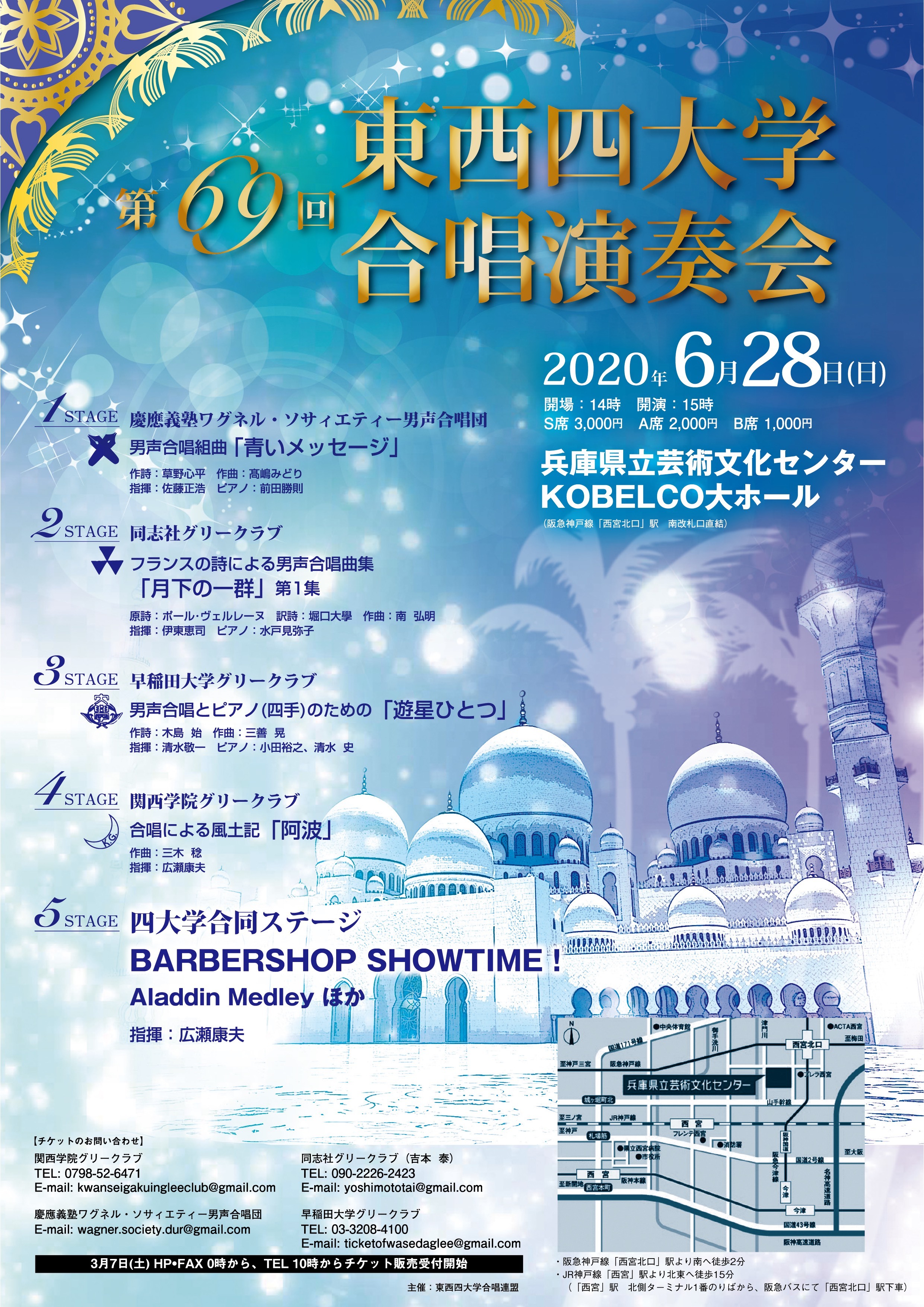 第69回 東西四大学合唱演奏会 webチケット注文受付情報