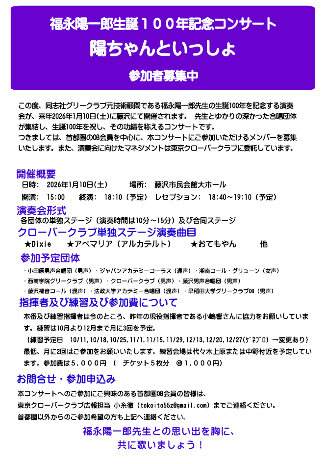 集合日時:2025年11月9日(日)午前9時45分(着替・発声・練習)