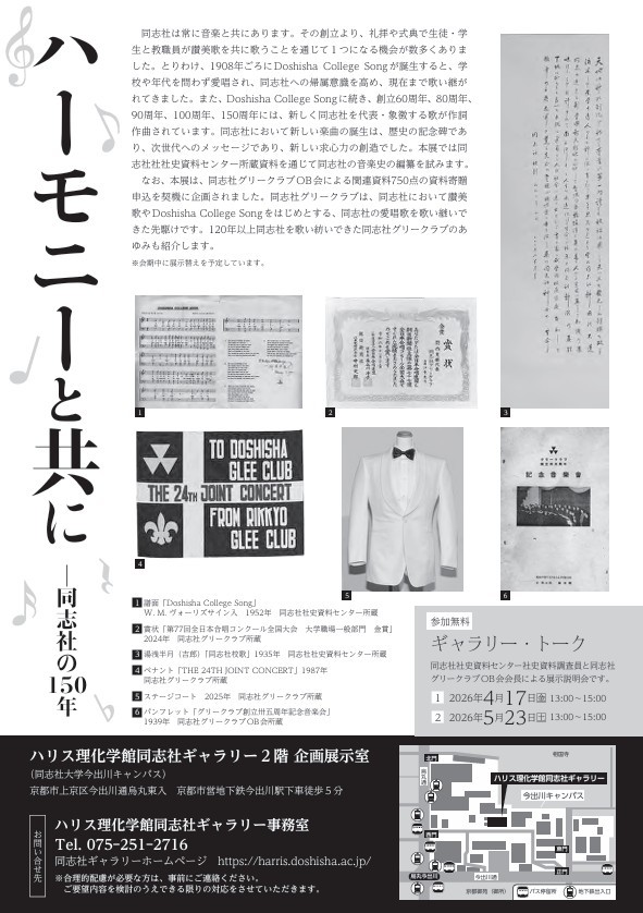 本展では、同志社グリークラブにゆかりのある記念品・思い出の品を 約50点 展示いたします。